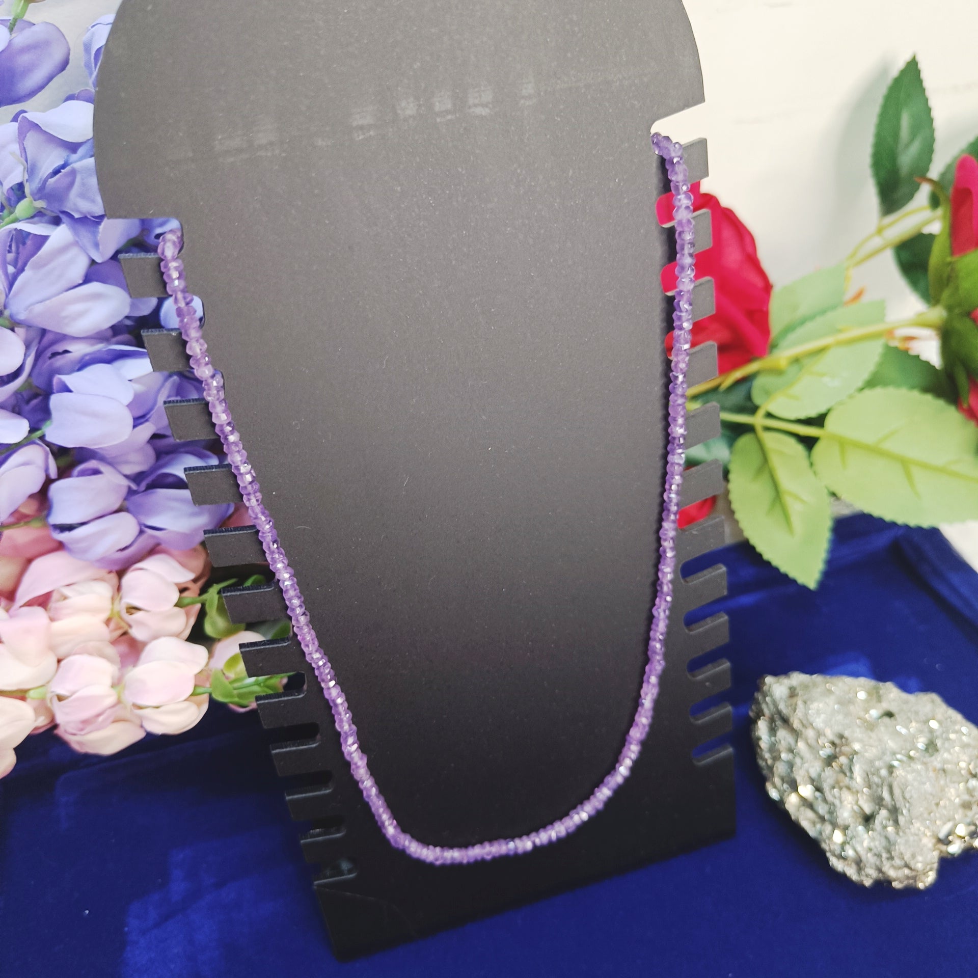 Elegant and soothing, our Amethyst Faceted Beads Necklace is crafted with sparkling 3mm natural faceted amethyst beads. With its deep purple hue and refined design, this necklace is a timeless, sustainable accessory that adds sophistication to any outfit while radiating calming and protective energy.